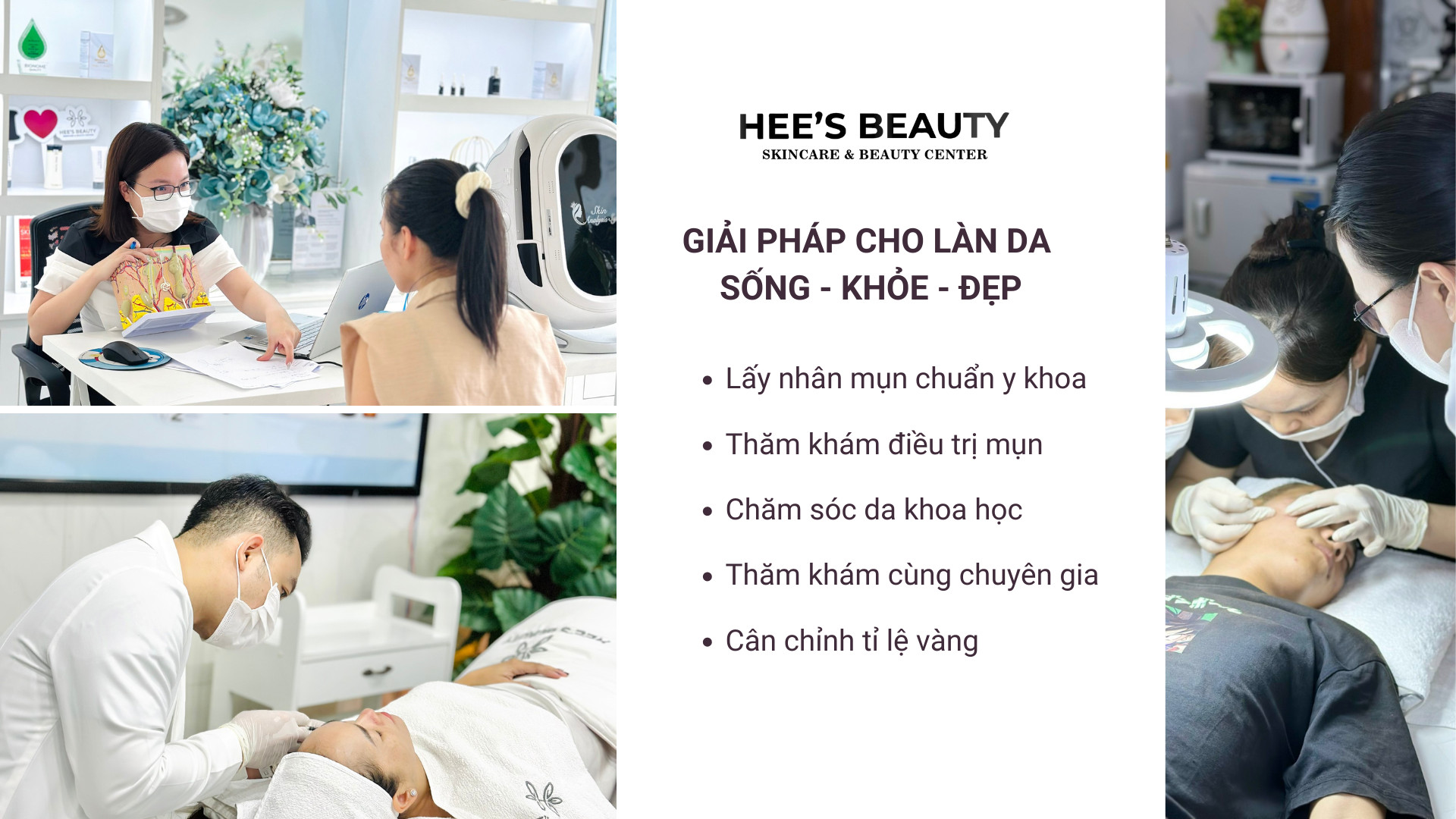 Đặc biệt tất cả các liệu trình điều được lấy nhân mụn miễn phí, chúng mình không chỉ thăm khám và chỉ định bởi chuyên gia để lấy nhân mụn theo quy trình chuẩn y khoa mà mỗi liệu trình tại Hee’s Beauty hướng đến sự điều trị toàn diện, kiểm soát và dứt điểm cho khách hàng.