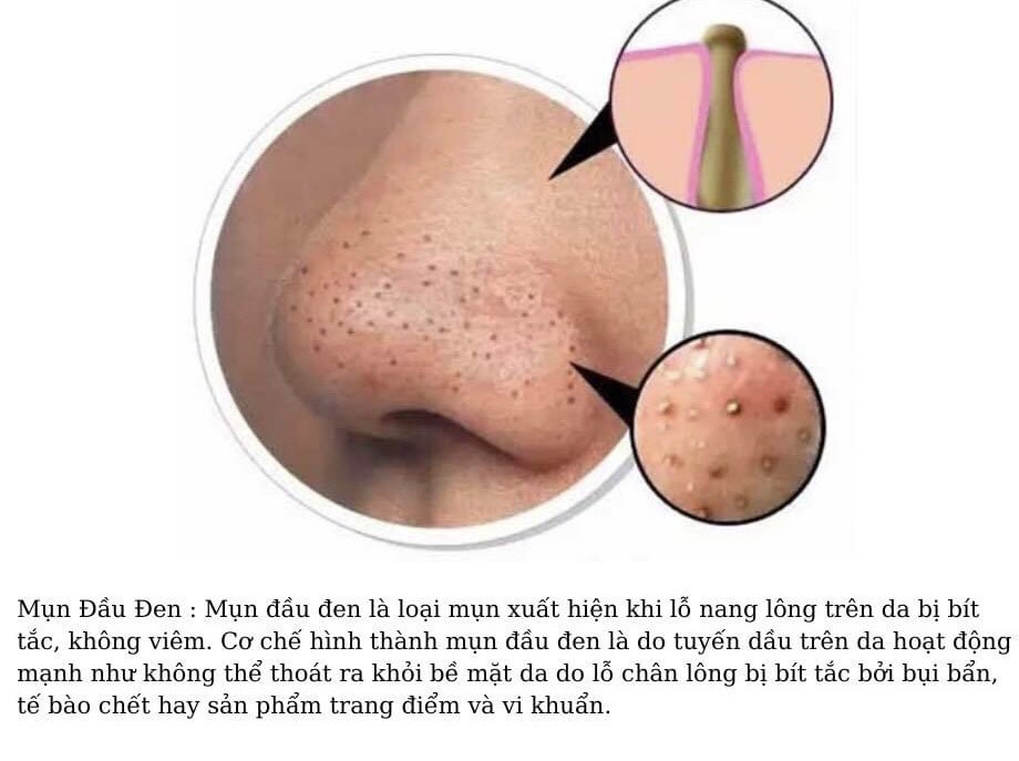 * Đầu nhân mụn mở, nốt mụn ẩn đã khô và gom cồi.